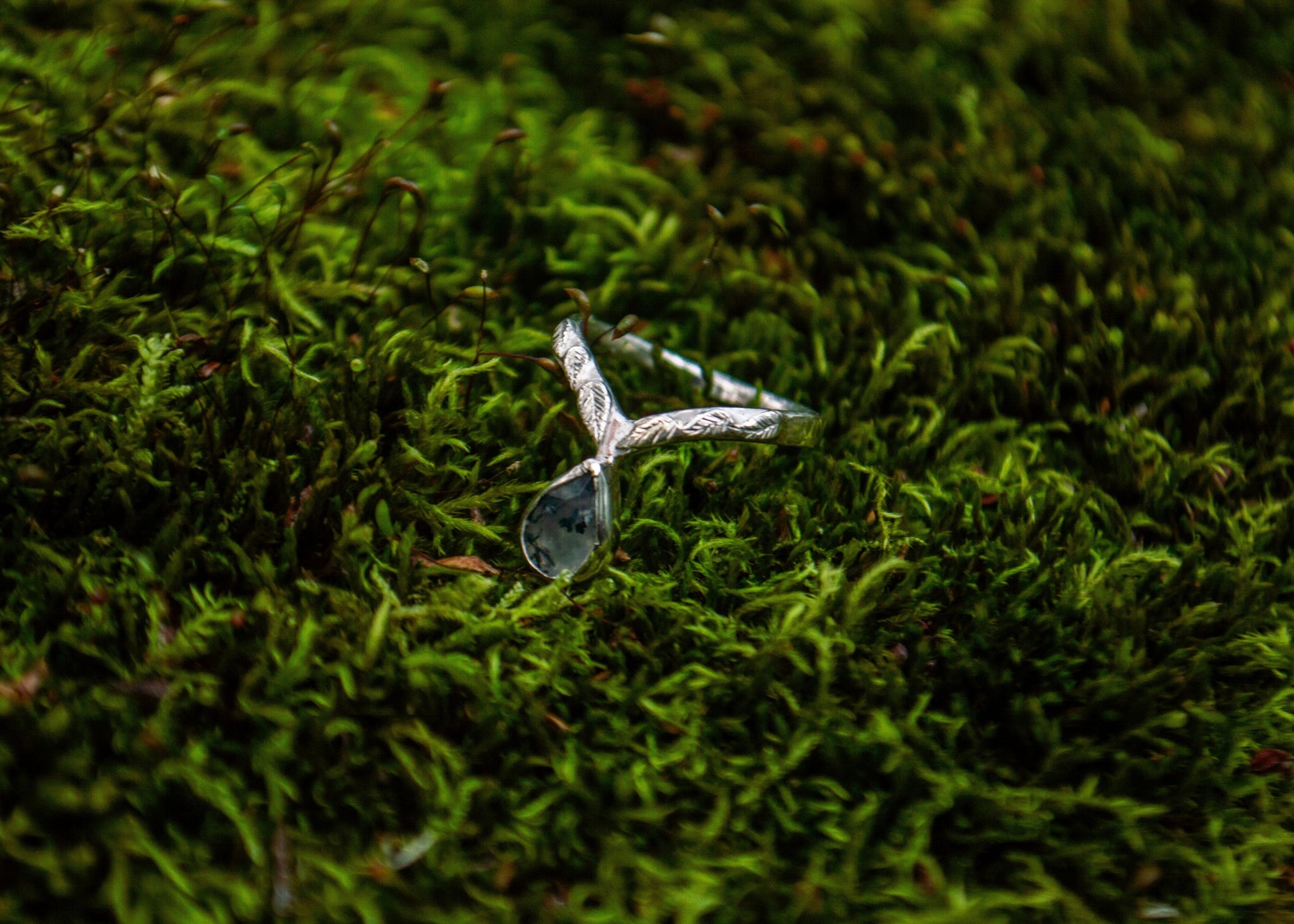 Hõbedast sõrmus sammalahhaadi ja lehemustriga