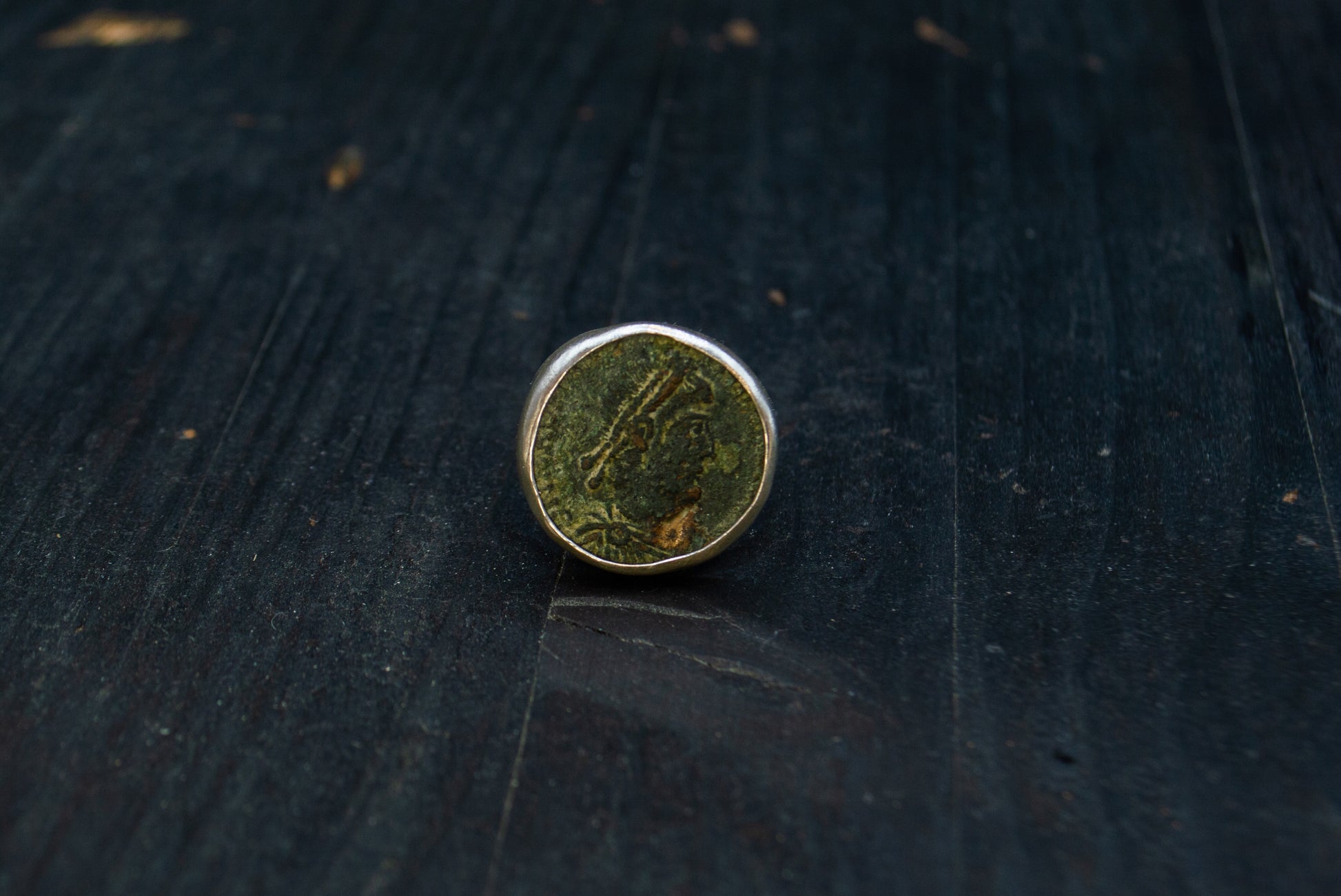 Sõrmus on kaunistatud originaalse Rooma ajastust pärineva mündiga