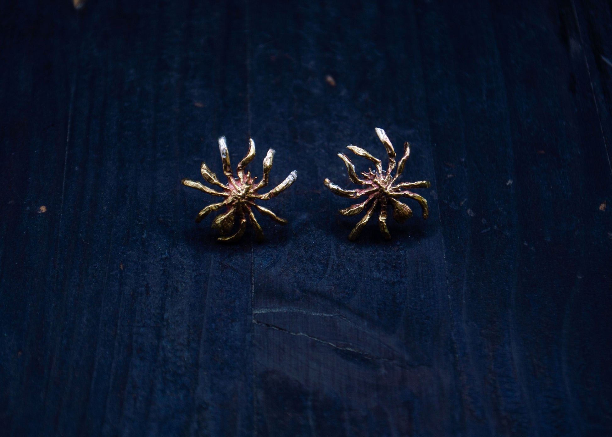 Brass earrings with a spider motif