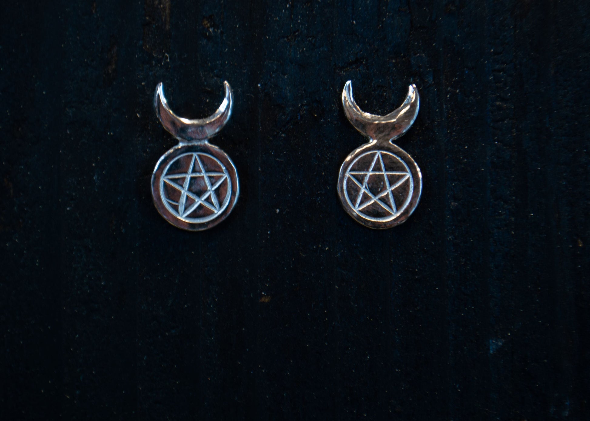 Silver earrings with pentagram and moon