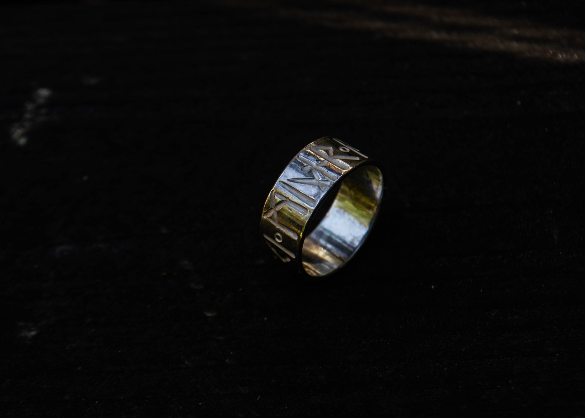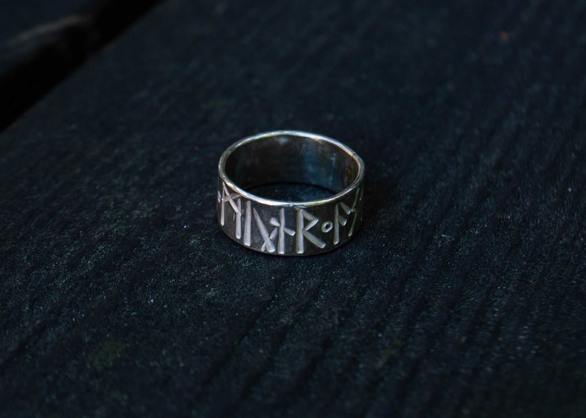 Text is written in the Elder Futhark, the inscription names of the most important gods: Thor, Odin, Frey, Freya and Loki.